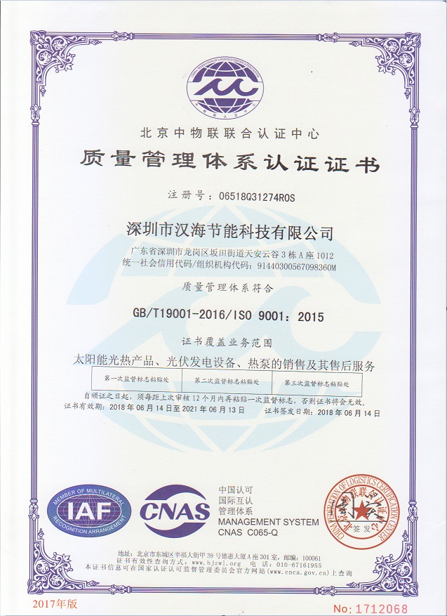 深圳市漢海節(jié)能科技有限公司成立于2011年,注冊(cè)資金6000萬元,總部設(shè)在深圳,是一家集設(shè)計(jì)、研發(fā)、施工于一體的專業(yè)化從事太陽能中央熱水工程、熱泵中央熱水工程、中央空調(diào)、光伏發(fā)電、水處理等新能源及節(jié)能環(huán)保行業(yè)的綜合服務(wù)商和工程商。在將近10年的發(fā)展歷程中,始終走在行業(yè)發(fā)展的前沿,是專業(yè)從事太陽能光熱、光伏,空氣源、太陽能熱水工程、水源熱泵,中央空調(diào),水處理產(chǎn)品的設(shè)計(jì)、安裝、售后服務(wù)為一體的高新技術(shù)企業(yè);是專業(yè)提供太陽能中央熱水工程、熱泵中央熱水工程、中央空調(diào)工程、光伏發(fā)電工程、水處理工程、太陽能熱水工程等全面解決方案的供應(yīng)商和工程商,產(chǎn)品涵蓋太陽能集熱器、空氣源熱泵、水源熱泵、中央空調(diào)、光伏組件、太陽能熱水工程等,是新能源的倡導(dǎo)者和推動(dòng)者。公司成立以來,始終秉承“誠信、責(zé)任、專業(yè)、高效”的服務(wù)宗旨,以市場(chǎng)需求為導(dǎo)向,以為客戶創(chuàng)造價(jià)值為己任的精神,不斷開拓創(chuàng)新,通過多年的快速發(fā)展,公司綜合實(shí)力躍居行業(yè)前列。漢海擁有一支經(jīng)驗(yàn)豐富、善打硬仗的專業(yè)高效團(tuán)隊(duì);擁有一批專業(yè)的高級(jí)工程師、中級(jí)工程師、二級(jí)建造師、造價(jià)工程師、電氣設(shè)計(jì)師、給排水設(shè)計(jì)師;擁有一批機(jī)電、安防、水、電等專業(yè)技術(shù)施工和售后人員,配備先進(jìn)齊全,實(shí)力雄厚,技術(shù)領(lǐng)先。漢海以質(zhì)量樹信譽(yù)、以工藝立標(biāo)桿、以管理創(chuàng)效益、以服務(wù)得人心,工藝水平在業(yè)界獨(dú)樹一幟,成為行業(yè)模仿的典范。漢海承建的機(jī)電工程(設(shè)計(jì)、施工)涉及星級(jí)酒店、賓館、高檔辦公樓、花園別墅、住宅小區(qū)、學(xué)校、水療中心、工廠等各種類型的工程,工程項(xiàng)目遍布全國各地。漢海將致力于成為全球信賴的新能源綜合服務(wù)商,為客戶提供新能源的全方位解決方案。未來,漢海將依托國家政策,積極開拓粵港澳大灣區(qū)、中國特色社會(huì)主義先行示范區(qū)市場(chǎng)及“一帶一路”沿線國際市場(chǎng),推動(dòng)新能源的新輝煌。